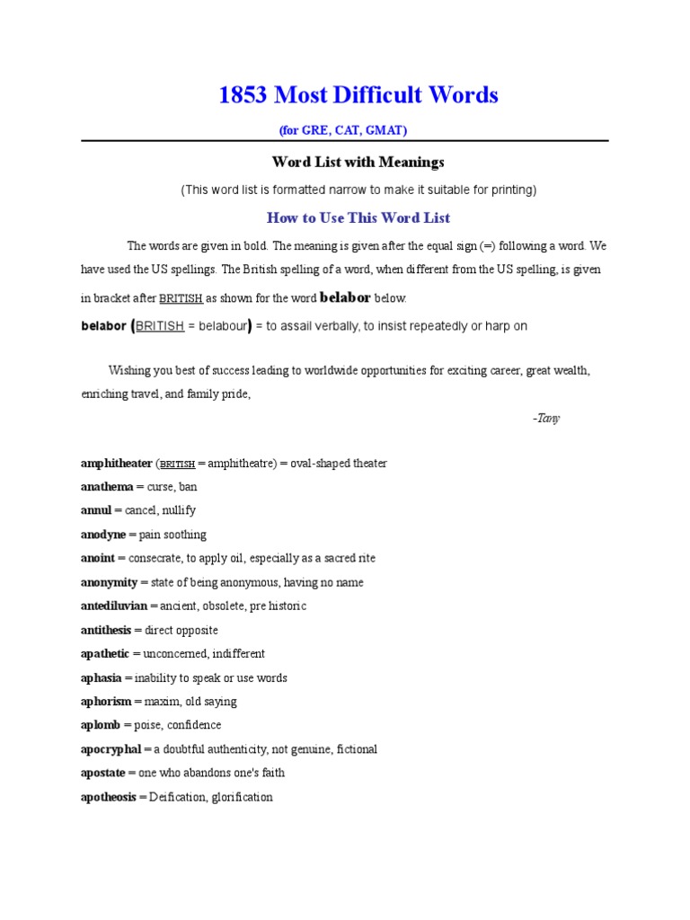 1853 Most Difficult Words For Gre Cat Gmat Pdf